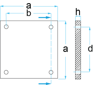 a=450 mm b=354 mm d=354 mm PxLxK=450 x 450 x 20 mm