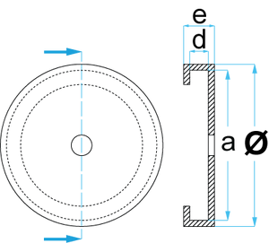 Halkaisija: 160 mm a=148 mm d=6 mm e=24 mm